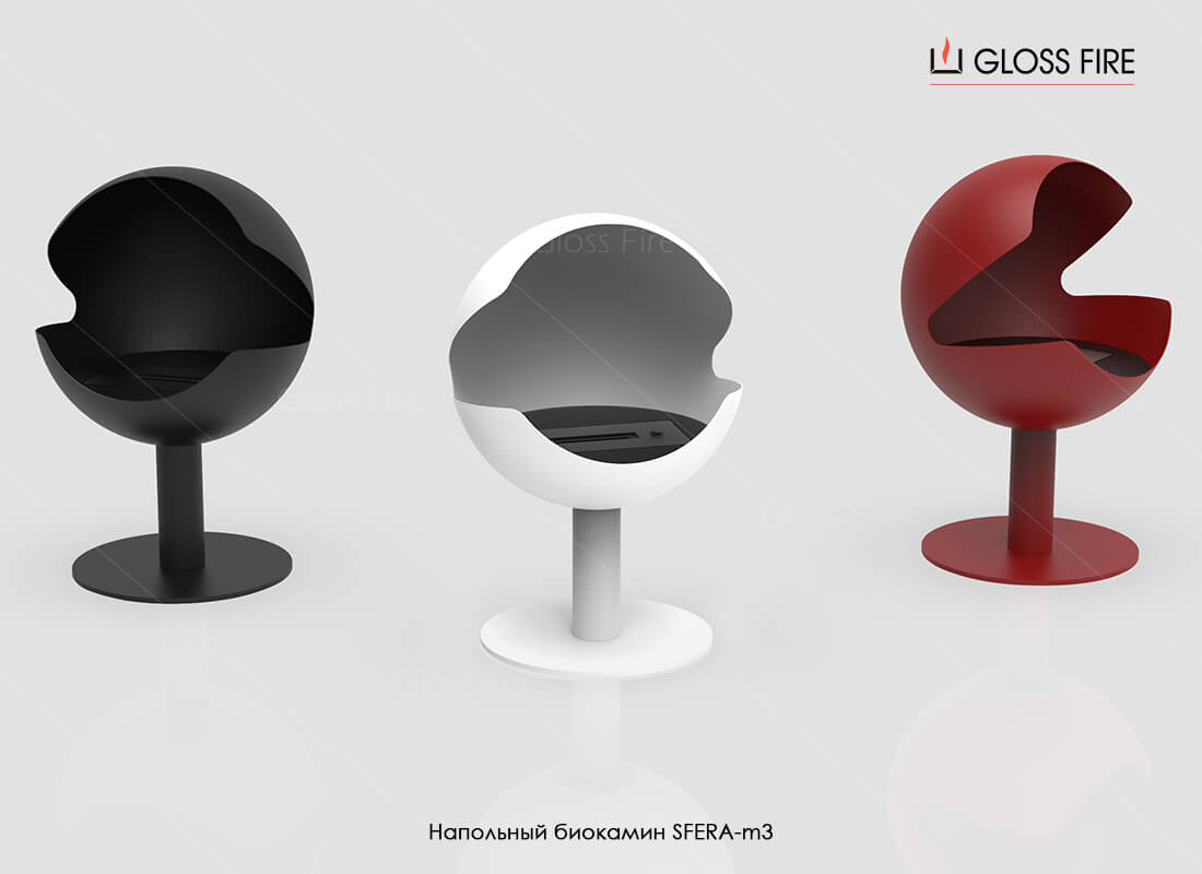 Утончённый напольный биокамин имеет форму сферы на прямой стойке с вращающимся элементом (как опция). Конструкция выполнена из стали, которая идеально окрашена термостойкой краской. Автономный удобный биокамин способен украсит практически любой задуманный интерьер.
