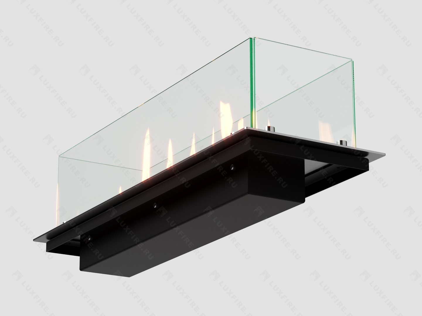 Представляет собой цельную металлическую универсальную рамку в которую вставляется топливный блок Lux Fire 600 c увеличенной лицевой панелью, способную создать полуоткрытое безопасное пространство для огня ограниченную защитным экраном (закаленным стеклом) с четырех сторон.